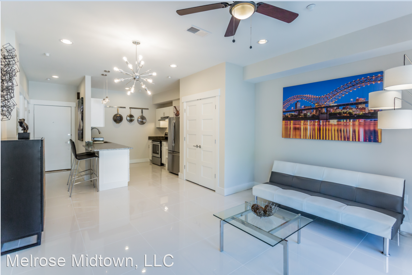 The Ramona - One of our most beautiful apartments is the Ramona. Enjoy a kitchen fit for a chef, a huge balcony or garden, your own private gated townhome entrance and parking space, a marble bathroom, and so much glass and natural light that you won't want to leave! The Ramona is named in honor of a very special Melrose Midtown resident who has been with us since 1972 and still calls the Melrose home. If you're ready to move, we're ready to meet you! The Melrose won the 2019-2022 award for Best Apartment Community in all of Memphis. Find out why and take a tour today. Please Note: Pricing at the Melrose is slightly higher on the north side and for unit 112, which has a very large private garden. Private assigned parking spaces are also a little extra.